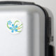 A fresh tropical print with sky blue flowers, light corals stars and green swirls