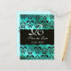 BLUE GREEN TURQUOISE DAMASK CLOTH,WHITE MONOGRAM ANNOUNCEMENT POSTCARD