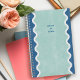 A bold spiral-bound notebook created to coordinate with the "Wavy Lines" stationery set. The message says "Write It Down", and features an aqua and blue textured background with a simple wavy line frame.