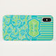 This modern, personalised, turquoise blue, green, and white stripes with damask Case-Mate Barely There™ iPhone X Case has spots for you to add your name and monogram. If you need help customising this, please email niteowlstudio@gmail.com.
