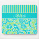 This modern monogrammed turquoise blue, green, and white stripes with floral damask pattern mousepad has template boxes for you to customise with your own name, initials, monogram, or other text. If you need any help customising this trendy mousepad, please email niteowlstudio@gmail.com.