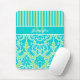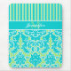 This modern monogrammed turquoise blue, green, and white stripes with damask pattern mousepad has template boxes for you to customise with your own name, initials, monogram, or other text. If you need any help customising this trendy mousepad, please email niteowlstudio@gmail.com.