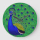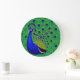 Blue- green yellow peacock Wallpaper Large Clock