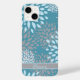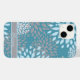 Blue Grey and Teal Modern Abstract Floral Pattern Case-Mate iPhone 14 Case. This phone case can be personalised.