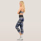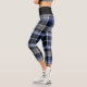 These capri leggings feature a dark plaid pattern in blue, grey, and black.