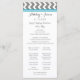Wedding program in chic and modern teal blue, dark charcoal grey and white retro chevron zigzags stripes pattern. Customise these order of ceremony cards with your own text or contact us for a custom card to fit your text.