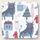 Grey Christmas Decoration Pattern Plastic Coaster. Design features traditional Christmas hand drawn decorations set of ornaments, gloves, mitten, trees, stockings.