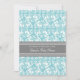 Personalised baby shower invitations in elegant and modern bright teal turquoise blue, grey and white classic floral damask pattern. Customisable with your text, contact us to request a colour change.