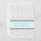Personalised baby shower invitations in elegant and modern light pastel aqua sky blue, grey and white classic floral damask pattern. Customisable with your text, contact us to request a colour change.