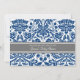Personalised baby shower invitations in elegant and modern dark navy blue, grey and white classic and vintage floral damask pattern. Customisable with your text, contact us to request a colour change.