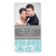 Elegant Wedding thank you custom photo template labels in stylish bright teal turquoise blue, grey and white with classic and romantic floral vintage damask pattern, the perfect addition to your wedding, available in a wide selection of matching wedding products. Perfect for wedding favours or wedding wine bottle labels.