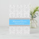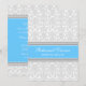 Custom rehearsal dinner party invitations in modern and elegant bright ocean malibu blue, grey and white classic and romantic floral damask vintage pattern. Personalise the text to create a unique invitation for your wedding rehearsal dinner. Contact us to request a colour change. Available in many matching wedding products.