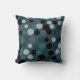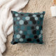 Blue grey and black polka dots on a grey background give this pillow retro style. The design is from original art.