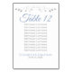 Make your wedding reception beautiful with these table number cards. Designed as a part of our Blue & Grey Elegant Wedding Suite, they feature a simple yet elegant design with lavender blue & Grey text on a white background with a silver faux foil floral border. These cards include seating assignments so your guests will have an easy time finding the right table.