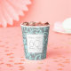 Beautiful and elegant vintage light turquoise floral pattern on grey background. Sophisticated and feminine 60th birthday party paper cup with transparent and white square shapes for texts. You can easily change text (font, colour, size and position) by clicking the customise button. Matching birthday party items: paper napkin, paper plate, guest book, thank you favour box... and birthday gifts with monogram: mug, pillow, luggage, luggage tag and more... Do not forget the whole collection of vintage floral patterns for birthday.