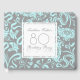 Beautiful and elegant vintage light turquoise floral pattern on grey background. Sophisticated and feminine 80th birthday party guest book with white and transparent square shapes for texts. All is customisable: you can easily change texts (font, colour, size and position) and design (size and position) by clicking the customise button. Matching Thank You favour box, pillow, luggage, luggage tag and more... Don't forget the whole collection of vintage floral patterns for birthday and gifts for birthdday with monogram.