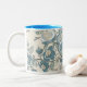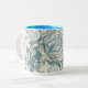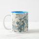 Nice coffee mug featuring a soft blue grey flowers pattern against a lily white background.