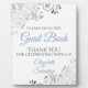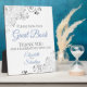 This elegant self standing sign or plaque will welcome guests to sign your wedding guest book. Fully customisable, and designed to coordinate with our Blue & Grey Elegant Wedding Suite, it features a simple sophisticated yet fancy design with light blue & grey text on a white background with a silver faux foil frilly floral filigree in the corners.