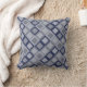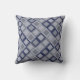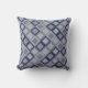 Modern throw pillow features a blue and grey geometric colour block pattern with shades of grey and light blue on a simple darker blue background. This patterned design is built on combinations of repeated square blocks, which are overlapped to form a stylish geometric linear colour block pattern.