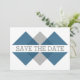 Modern and chic Geometric Triad Save the Date Announcement featuring a stylish triangle design in dark blue and grey. Easy to customise, this simple yet elegant design may be personalised with your wedding details. Click "Customise It" to find more personalisation options.