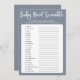 Blue grey modern baby shower word scramble game invitation