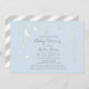 Soft and dreamy, this beautiful invitation features crescent moon and sprinkle of dainty stars over baby blue background. Grey and white stripes on the back add extra touch. Click to customise further to change font style, size and or colour.