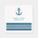 Elegant and classic Nautical Anchor Wedding Paper Napkins with a simple boat anchor and an array of stripes in dark navy blue and grey. These nautical beach themed wedding napkins can be easily customised with your wedding details. For more customisation options, click on the Customise It button.