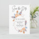 Blue Grey Orange Floral Botanical Wedding Save the Date.