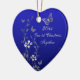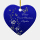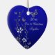 Remember your special day with this beautiful royal blue floral heart shaped ceramic first Christmas together keepsake ornament with silver grey butterflies and flowers on it. You can customise the text to say whatever you want. ****PLEASE be sure your text is placed where you want it, and NOT right up to any edge, as it will print out as it appears on your monitor. Zazzle will NOT correct anything. It also matches the wedding invitation shown below. If you need any assistance, please email niteowlstudio@gmail.com.