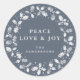 Blue-Grey Peace Love + Joy Holly Wreath Classic Round Sticker