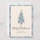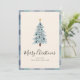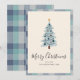 Blue Grey Plaid Minimal Christmas Tree Holiday Card