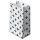 Blue-grey polka crosses on white small gift bag