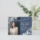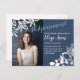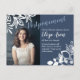 Unexpected date changes can happen. Send your understanding guests a date postponement postcard with blue-grey and white floral colour theme. These postponement announcement cards are perfect for any Bat Mitzvah, graduation, Quinceanera, teen birthday, anniversary, graduation, or wedding celebration.