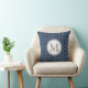 Elegant and modern dark navy blue, grey and white classic Moroccan quatrefoil lattice pattern custom monogram decorative throw pillow. Fully customisable, add your own initial for a truly unique home decor item.
