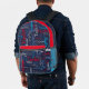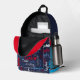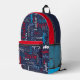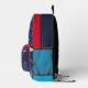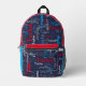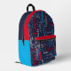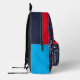 Typographic short name text mid blue, grey, cyan blue, bright red and white on a dark blue background custom boy backpack. Background colour can be changed if required currently dark blue. Fun personalised graphic text personalised backpack, ideal for, school, college, school camp or trips out. Personalise with your own short name, currently reads Taylor for help with personalisation and other name lengths please contact me. © Design by Sarah Trett for www.mylittleeden.com