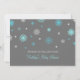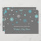 Personalised baby shower invitations for winter or Christmas holidays in cute and modern bright aqua sky blue, charcoal grey and white fun and festive snowflakes pattern. Customisable with your text, contact us to request a colour change.