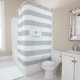 Blue Grey Stripe Family Name & Monogram Shower Curtain