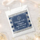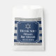 These navy blue, grey, and white striped Bar Mitzvah thank you favour bags would be a great way to send your guests home with a sweet treat from your Bar Mitzvah. Fill the bag with a large custom cookie or pretzel your guests are sure to remember. These square shaped Bar Mitzvah favour bags have a navy blue and simulated textured grey striped pattern behind a navy blue and white trimmed ticket-shaped text area that is personalised with the name and date of the Bar Mitzvah in white with a large "THANK YOU!" below a Jewish Star of David in grey. The star is removable if you want to use it for a different event or if you need more room for your text.