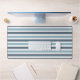 Blue-grey striped desk mat.