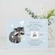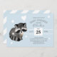 Blue Grey Stripes Racoon Baby Shower Invitation