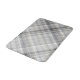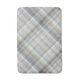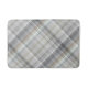 A muted, yet, colourful plaid pattern with repeating diagonal stripes in shades of blue, grey, and tan.