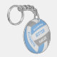 This team colours volleyball themed keychain for boys or girls features a realistic looking blue, grey and white volleyball upon which you can customise the player's name, jersey number and court position, plus school or club name and mascot name in a varsity letter style font - by katz_d_zynes