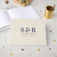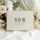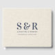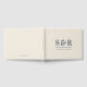 This elegant Gust Book features a beige linen texture background with a simple blue-grey wedding monogram.