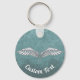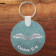 Wide open blue-grey wings illustration. Grunge blue background. Custom text on both sides.