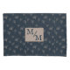 A dark grey blue background colour reminiscent of wrought iron is overlaid with beige gingko leaf print. Personalised with monogram.