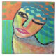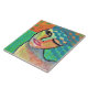 My funky abstract painting of a woman with blue hair on OSB board printed on ceramic tile