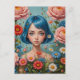 Blue Hair and Flowers Postcard