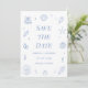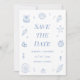 Blue Hand Drawn Coastal Wedding Save the Date Invitation