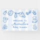 Doodle baby shower welcome banner in blue and white features a whimsical hand-drawn stork illustration and playful lettering, creating a warm and inviting focal point for your celebration of a baby boy. Set against vertical pastel stripes, the freehand style text and sketch art bring a casual, modern charm that’s perfect for a boy baby shower. The minimalist design and soothing colour palette make this banner ideal for decorating entryways, gift tables, or photo backdrops while maintaining a cohesive aesthetic with matching doodle-themed baby shower decor.