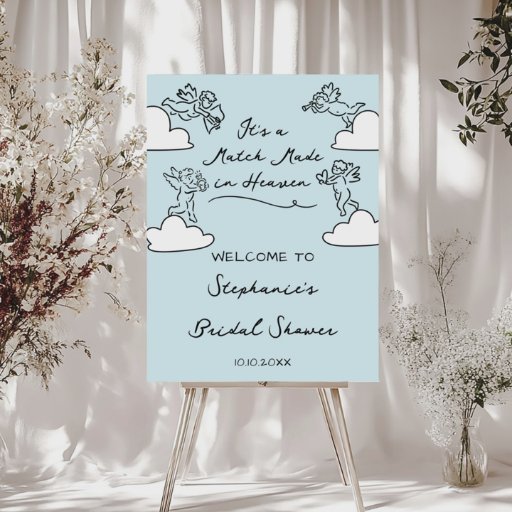 Add a charming finishing touch to your bridal shower favours with these Blue Hand Drawn Match Made In Heaven Bridal Shower Square Stickers, designed to bring heavenly romance and whimsical elegance to every detail of your celebration. Featuring hand-drawn cupid angels floating among soft clouds on a dreamy blue sky background, these stickers instantly elevate your packaging and décor.